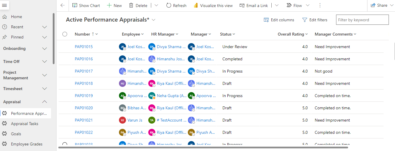 Navigate to Appraisal > Performance Appraisals from the left navigator.