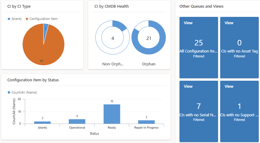 After any report type is created it may now be associated to the webpage for viewing. As best practice a strategic and insightful dashboard has between 4 to 6 reports. These reports supply a very targeted view of the data being collected and seen. Thus, aiding a company to make informed decisions whether from a business or technical perspective to keep guidance on a company’s ITIL journey.
