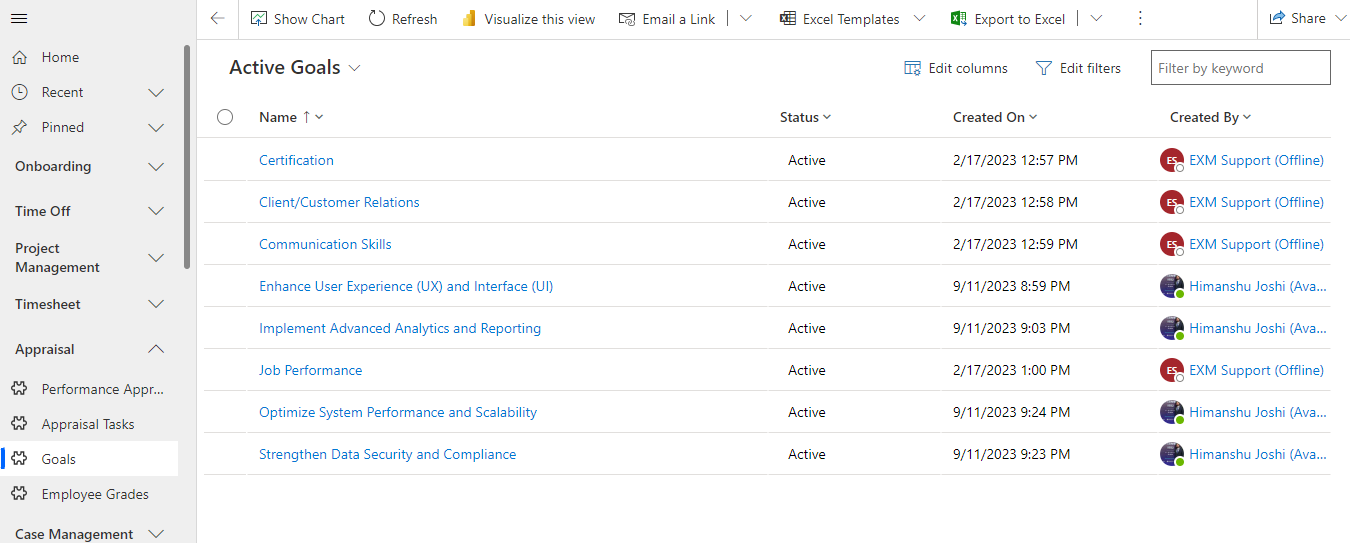 This section defines the categories for performance appraisal goals. Manager can use these categories when assigning tasks to employees for their performance appraisal.