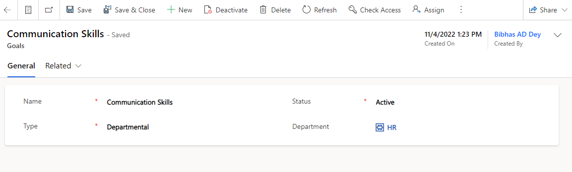 | Department | Indicates the department to which the goal will be applicable if the goal type is departmental. |