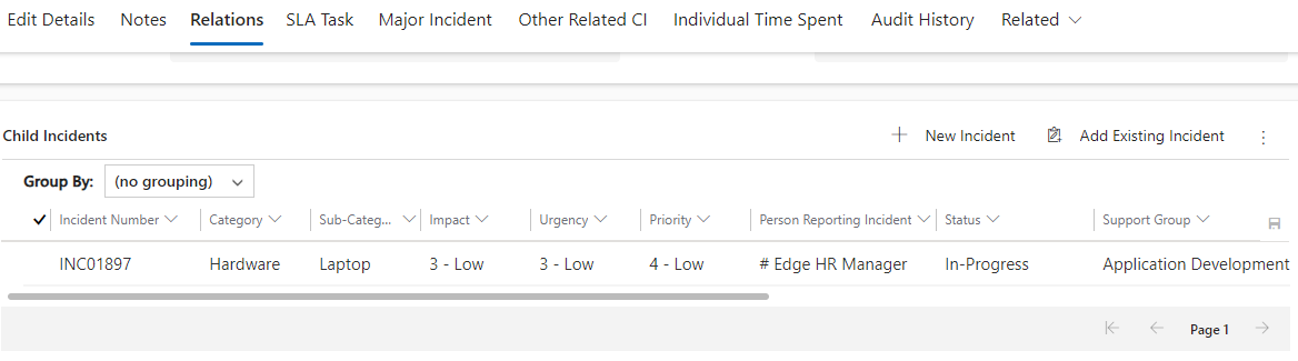 There are two ways to associate a child incident to a parent. The first is to click on the “New Incident Details” button and the second is to click on the “add existing incidents details” button, either method associates a children incident to the current incident record.