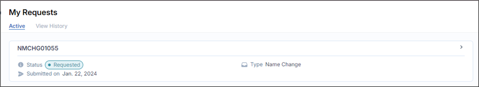 After submission, the system will automatically redirect you to the request view page where users can track and review their submitted name change.