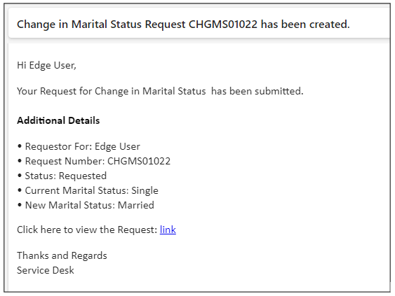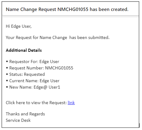 Notification will be sent to the requestor confirming the submission of the name change request.