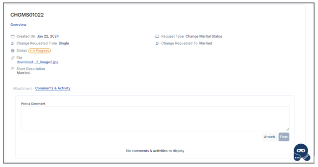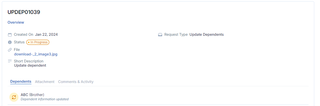 Attachments Tab: Check this tab to view all attached documents related to the request that are added in the "Comments/Activity" tab.