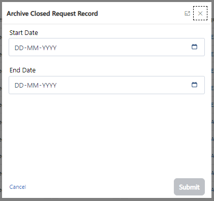 Please specify a date range for archiving records and proceed by clicking the "Submit" button.