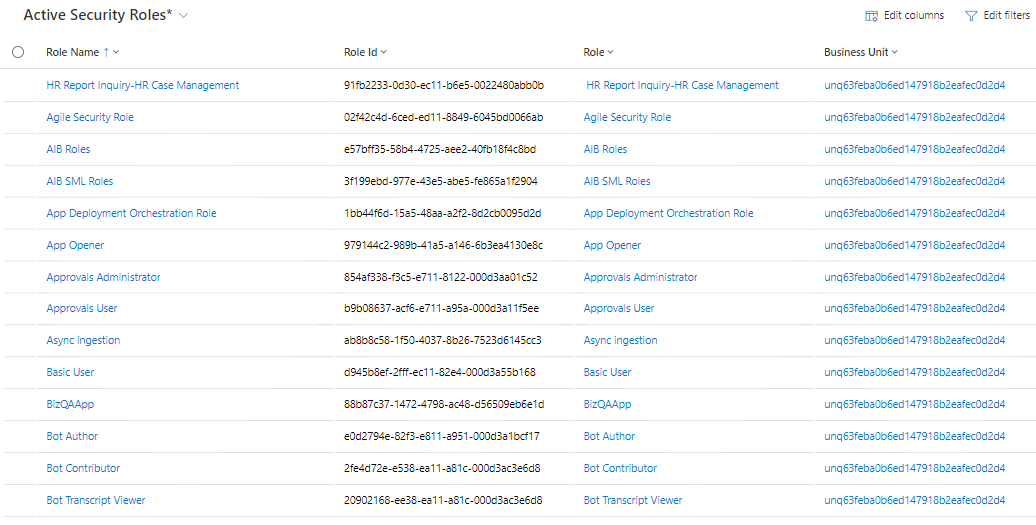 - Within this section, you will find an exhaustive list of all security roles available in your Dynamics environment, spanning across all business units. Each role has its unique set of permissions, defining what users can and cannot do within the application.