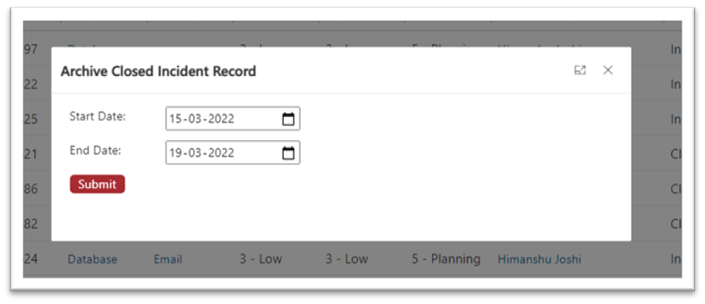 Admin can click on the button and specify the time for which the closed incidents need to be archived.