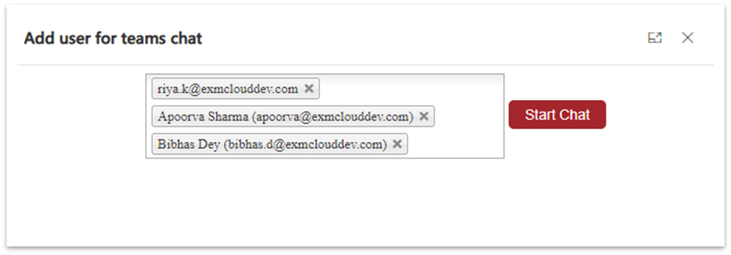The current logged in user is auto populated in the dropdown. Select the other users to be added to the team chat.