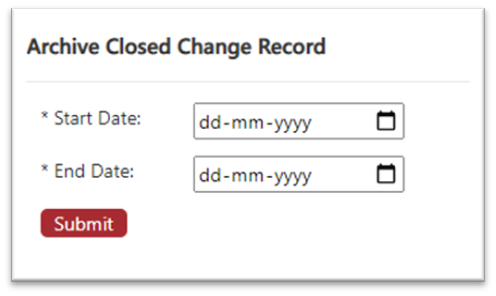 · Select the Start Date and End Date (range of date for which change needs to be archived).