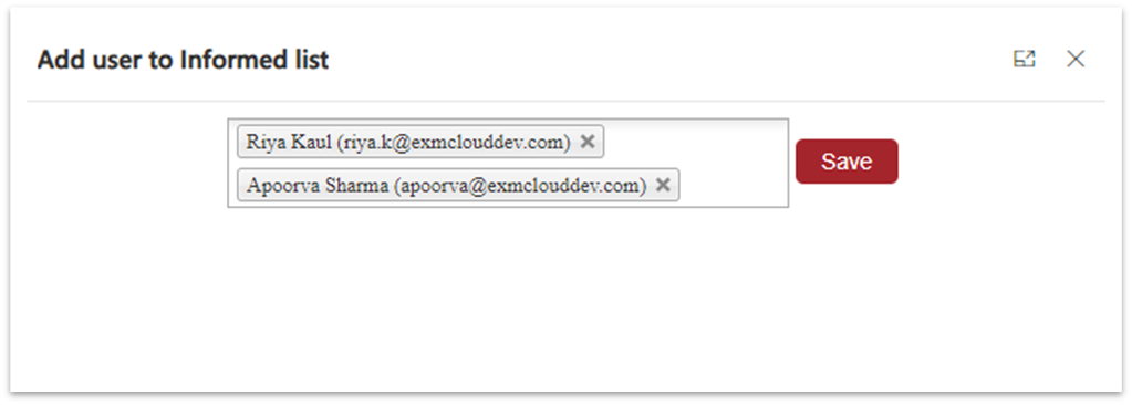 “Add to Informed” button is used to inform additional user about the change record. Informed users will receive email and/or teams notification when the change stage is updated.