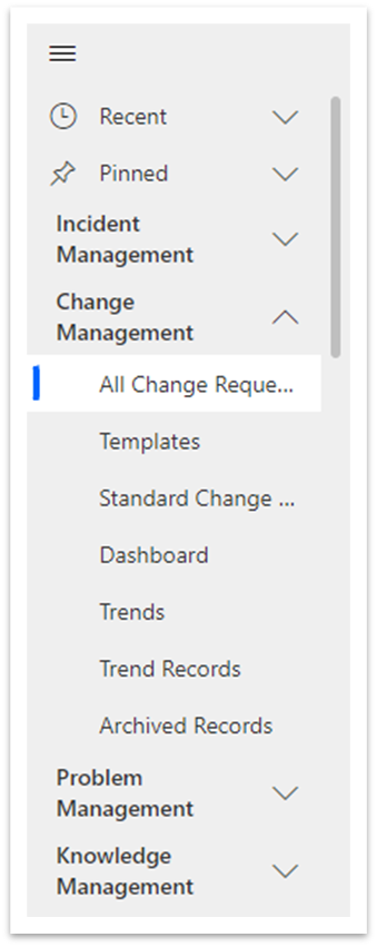 Navigate to *_Change Management > All Change Requests *_in the left navigator.