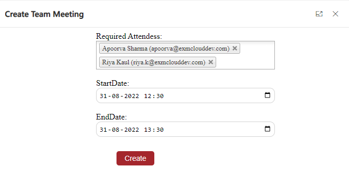 By clicking on Create button, Teams meeting is created, and email is sent to all the concerned members.